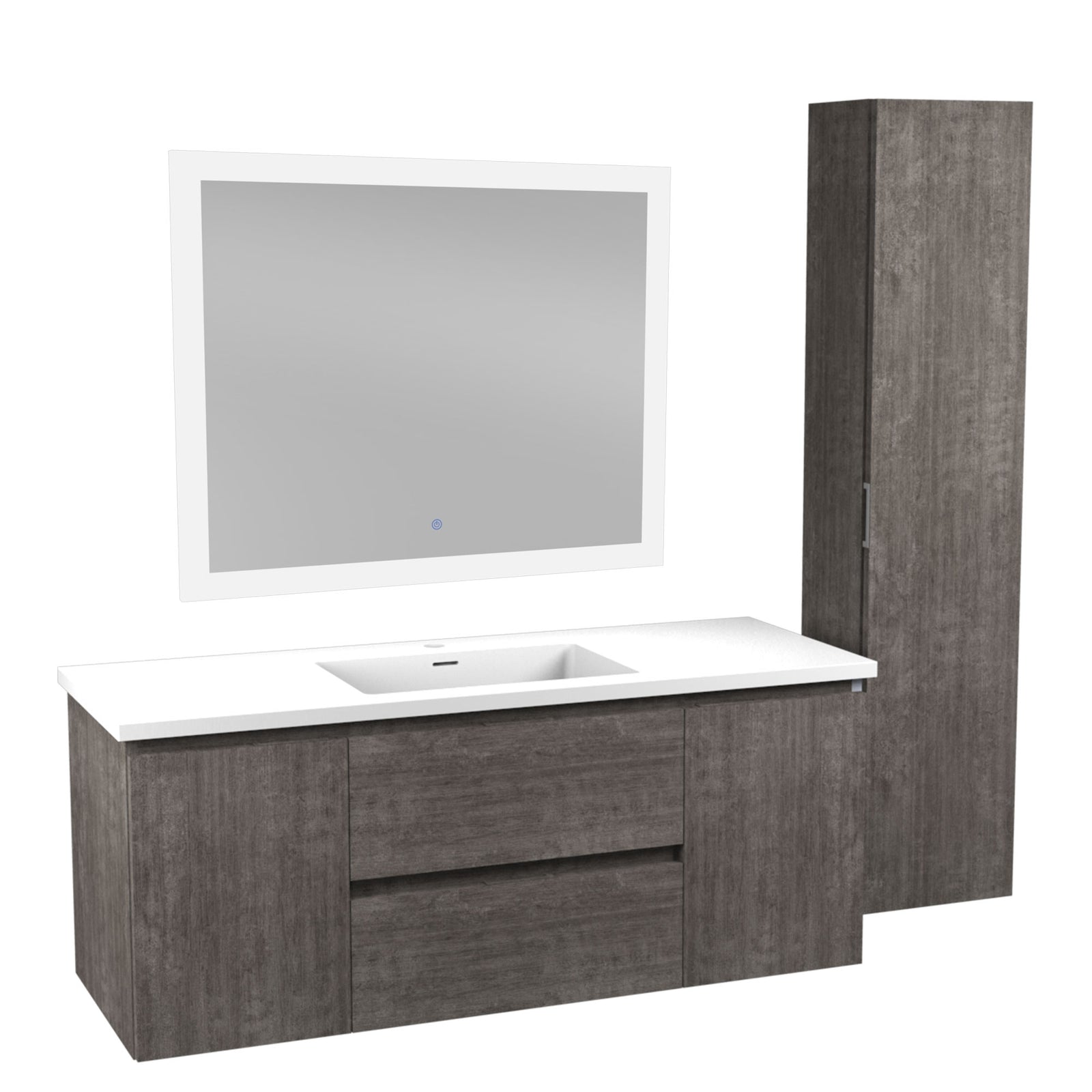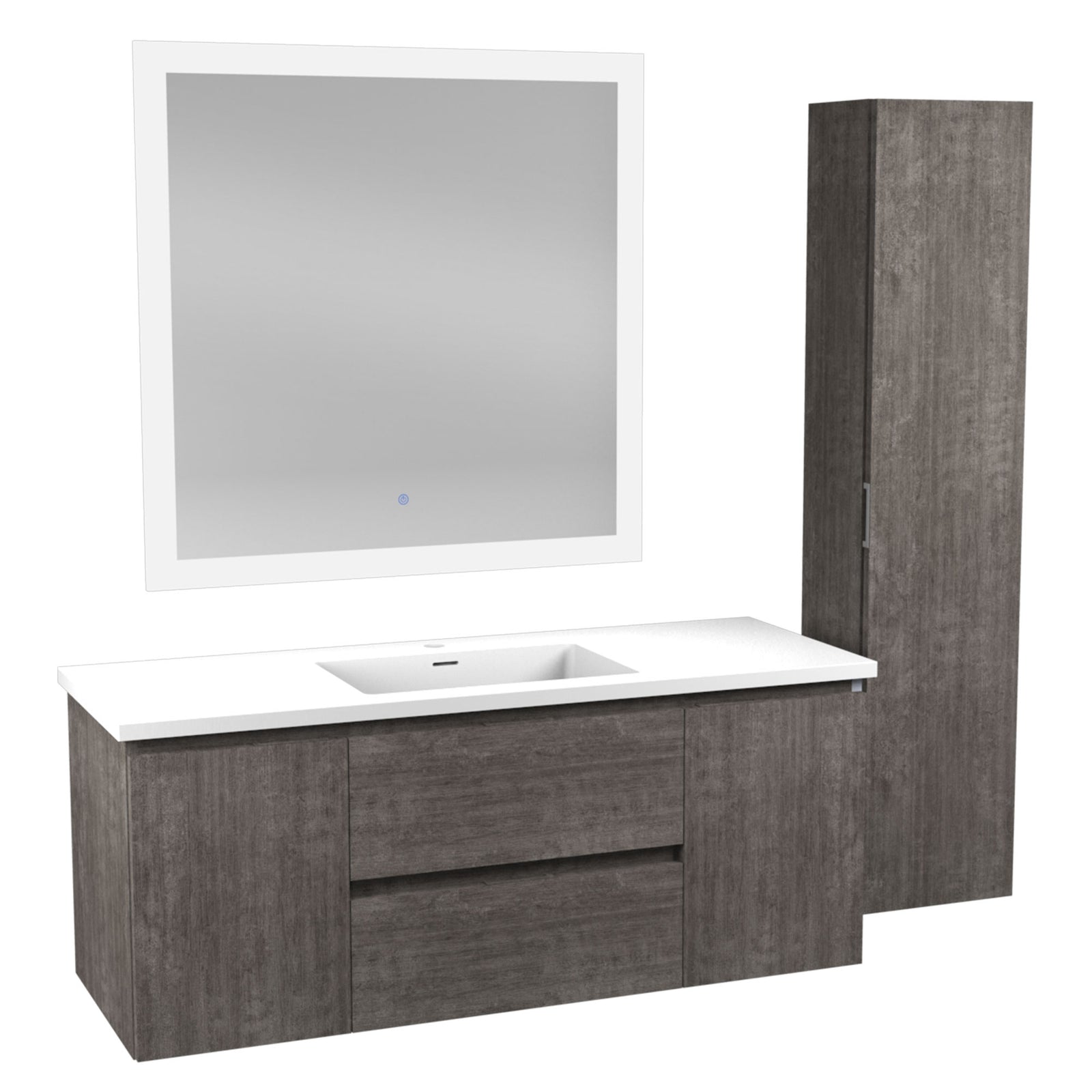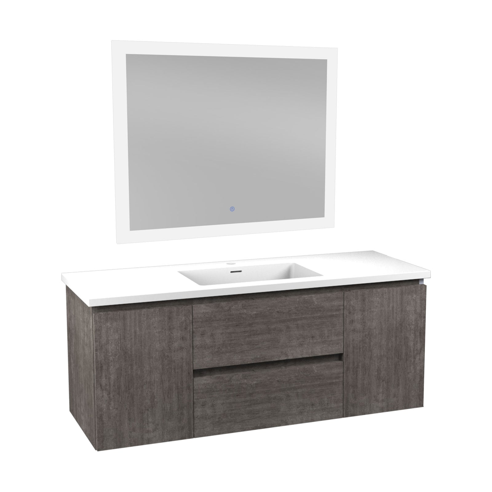 ANZZI Conques 48 in W x 20 in H x 18 in D Bath Vanity in Rich Grey with Cultured Marble Vanity Top in White with White Basin & Mirror